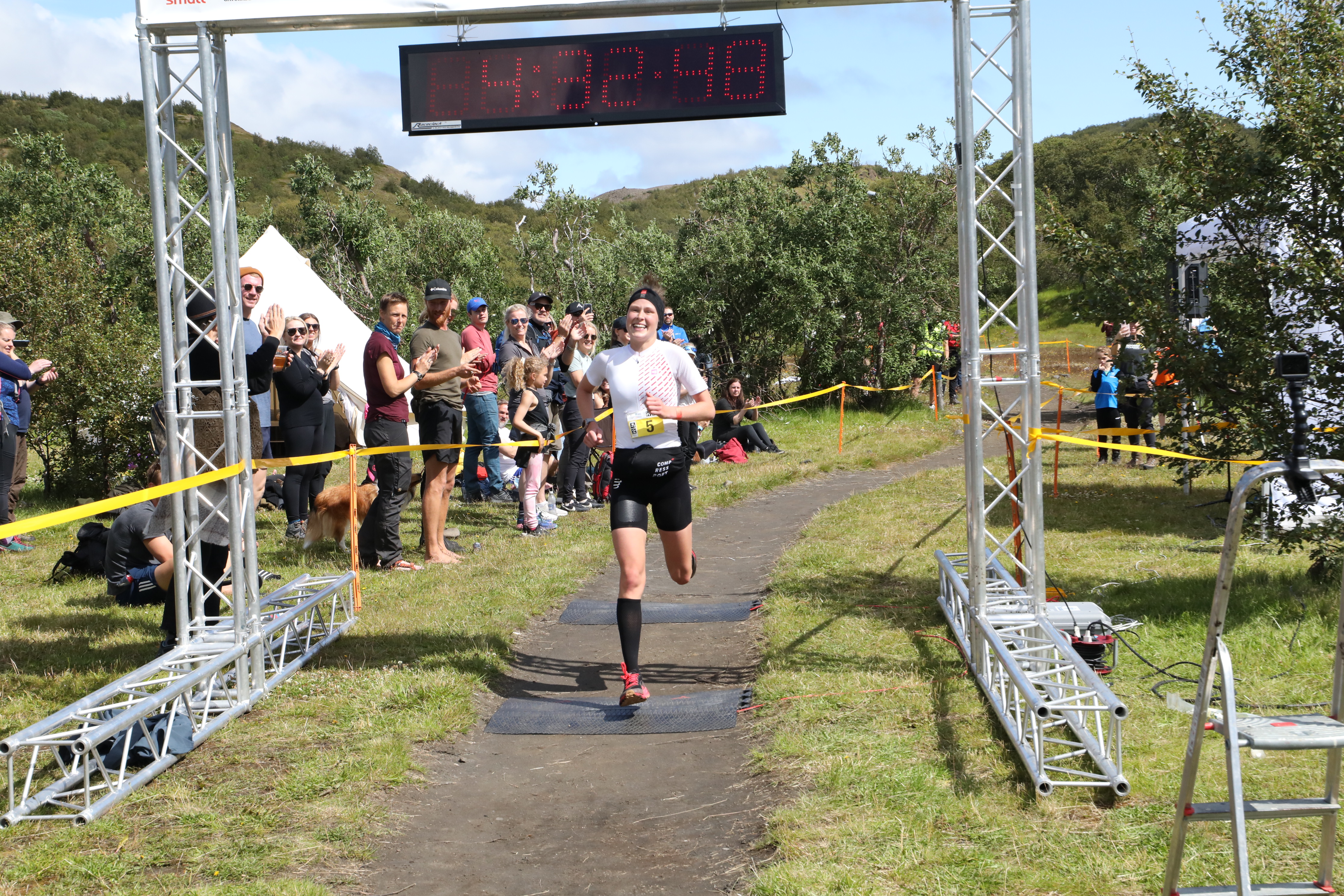Önnur var Íris Anna Skúladóttir á tímanum 5:18:31 í sínu öðru hlaupi. Þriðja var svo Elísabet Margeirsdóttir sem hljóp á 5:28:22, en þetta er í 13 sinn sem Elísabet hleypur Laugaveginn. Engin kona hefur hlaupið hann oftar en hún.