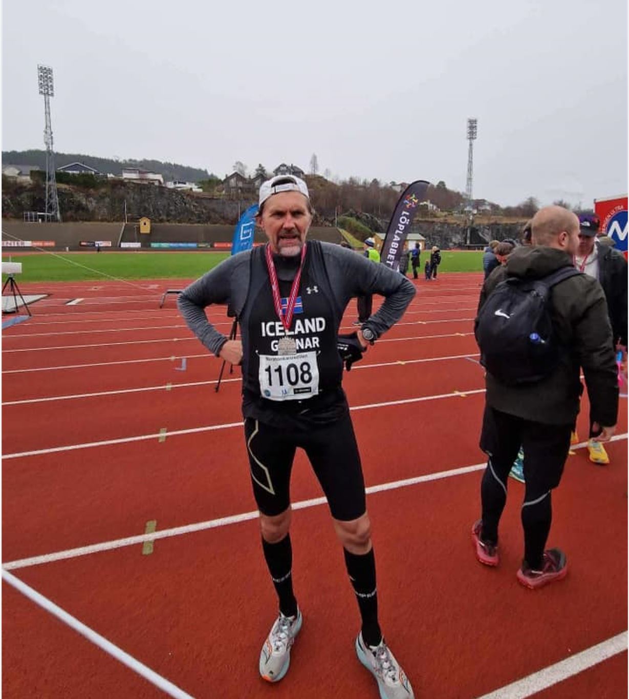 Fyrirkomulagið er þannig að heila maraþonið byrjar kl. 10:00 og hálfmaraþonhlaupurum er hleypt af stað kl. 11:30. Ég er ekki með á hreinu hversu margir hlauparar voru í hvoru hlaupinu fyrir sig. Því ef það er eitthvað sem má gagnrýna þá er það heimasíða hlaupsins, Løp 6 Bergen Adventsmaraton | Maratonkarusellen, en mér hefur ekki ennþá tekist að finna keppendalista eða uppgefna tíma hlaupara. Ég sá þó að daginn fyrir hlaup voru samtals ca 150 hlauparar skráðir. Ég get trúað að ca 40-50 hlauparar hafi farið heilt maraþon og hinir hálft. Þess má geta að í ár var brautarmetið slegið í heilu maraþoni með tímanum 2:28:45. Það er nú bara fjári góður tími í aðeins rúllandi braut. En skv. Strava þá eru hæðarmetrarnir 264 á móti 194 í vor/haust brautinni okkar.