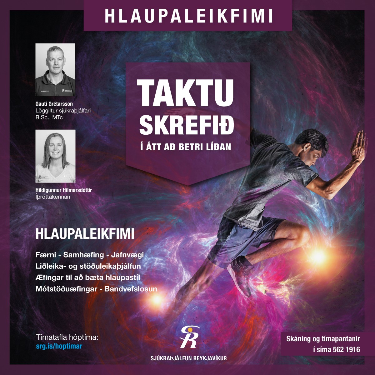 Einnig hafa sjúkraþjálfarar Sjúkraþjálfunar Reykjavíkur meðhöndlað hundruð langhlaupara sem hafa lent í álagsmeiðslum, ofþjálfun og áverkum tengdum hlaupaþjálfun.